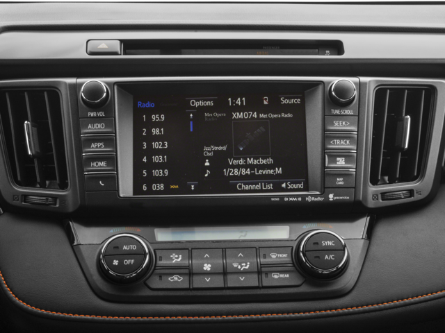 - Radio: Entune Audio Plus AM/FM/MP3/WMA Playback -inc: Entune App Suite, 6 speakers, HD Radio w/iTunes tagging, HD Traffic and Weather, SiriusXM Radio w/90-day trial, 6.1" touch-screen w/integrated back-up camera display, auxiliary audio jack, USB port w/iPod connectivity and control, vehicle information w/customizable settings, hands-free phone capability, phone book access and music streaming via Bluetooth® wireless technology