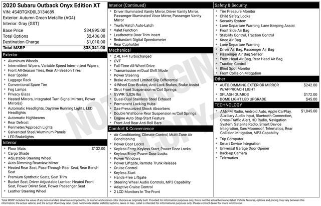 2020 Subaru Outback Onyx Edition XT