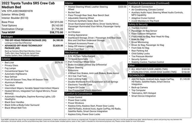 - Vehicle Name: Toyota Tundra 4WD