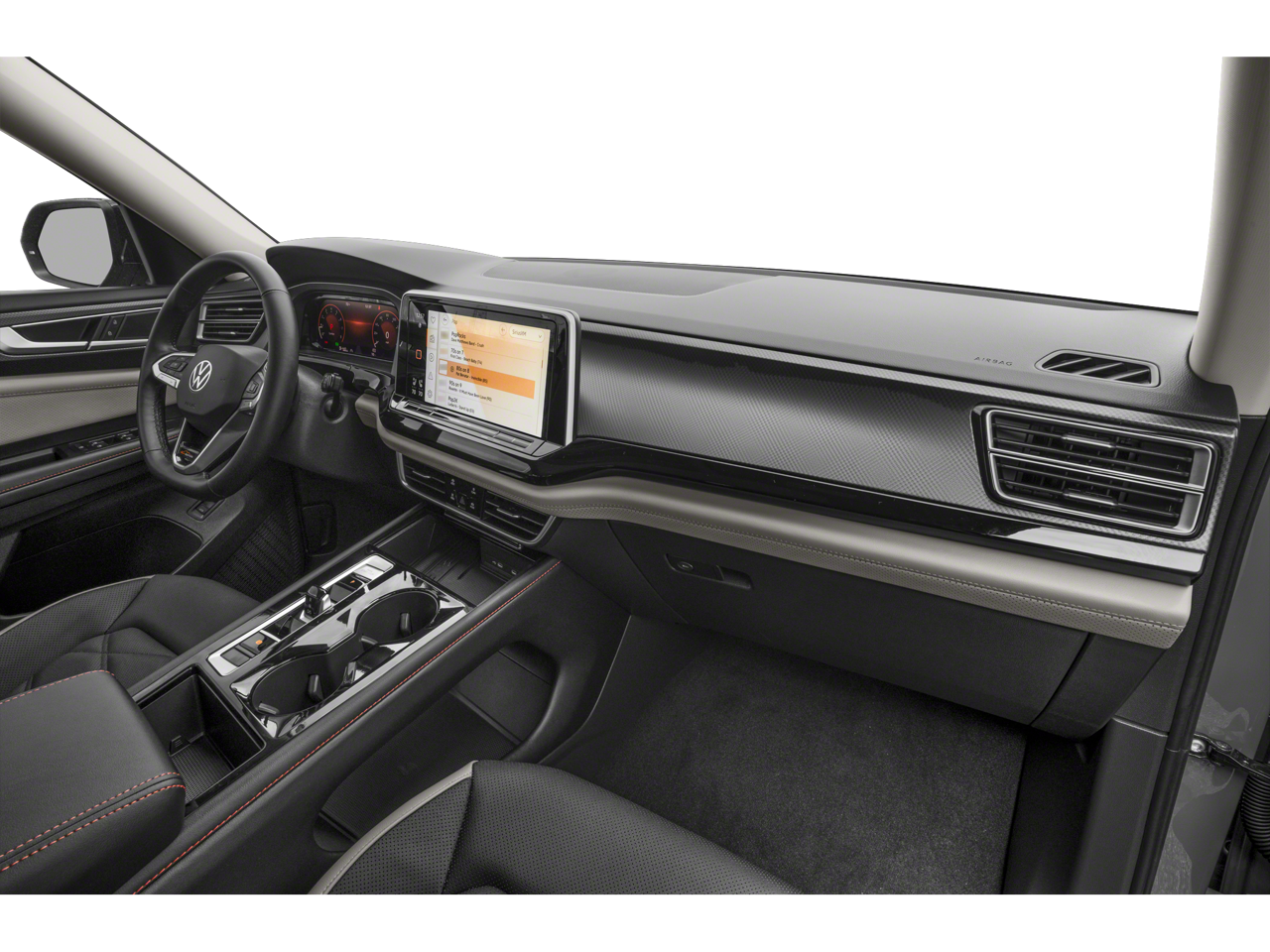 - Radio: MIB3 Composition Media -inc: 12" touchscreen multi-function center display, AM/FM/HD Radio and WMA/MP3/FLAC player w/USB-C input, voice control, SiriusXM w/360L (w/3-month free trial subscription; 360L services require acceptance of SiriusXM terms), 6-speaker sound system, Bluetooth® connectivity (for compatible devices), capability for in-vehicle 4G LTE enabled Wi-Fi (cellular data plan required; includes limited trial), capability for VW Car-Net services (capabilities for services vary; requires enrollment or subscription), App-Connect smartphone integration (w/Apple CarPlay, Android Auto and MirrorLink) via USB, wireless App-Connect smartphone integration (for compatible devices) w/multi-phone pairing capability and Qi wireless inductive charger up to 15W (for compatible mobile phones and accessories) in front row All VW Car-Net services subject to terms and limitations. Some services, which include emergency assistance services, require a paid subscription. See dealer or vw.com/carnet for details.